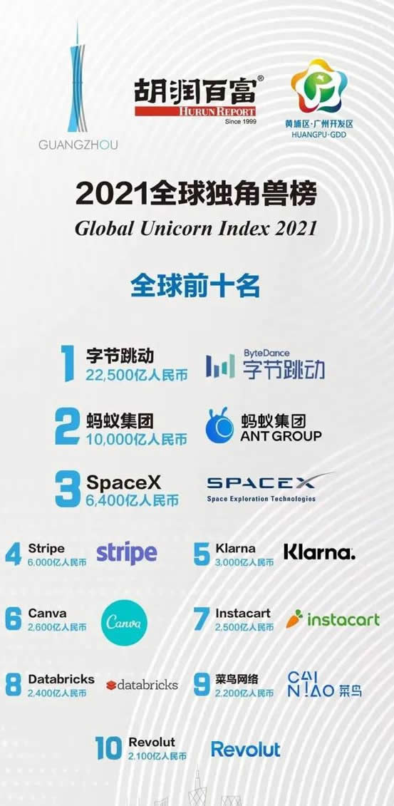 2021獨角獸榜單:中國十大獨角獸